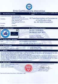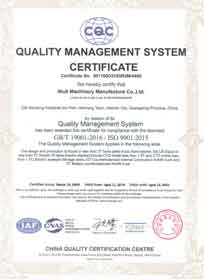 The company has obtained ISO9001 quality management system certification,European CE/GS certification,SGS international certification service company certification audit,special equipment manufacturing license issued by the General Administration of Quality Supervision,etc.