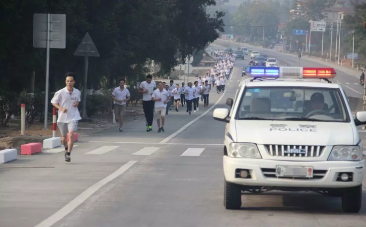 長跑過程中,全程有警車跟蹤式保駕護航和120緊急救援車做預防意外準備