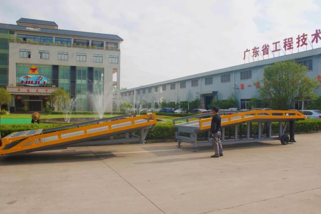 折疊式登車橋是與叉車配合使用的貨物裝卸輔助設(shè)備,在地面和車輛之間搭起橋梁,可根據(jù)汽車車廂的高低調(diào)節(jié)高度,叉車可以直接通過它駛?cè)胲噹麅?nèi)進行貨物的裝卸作業(yè)。