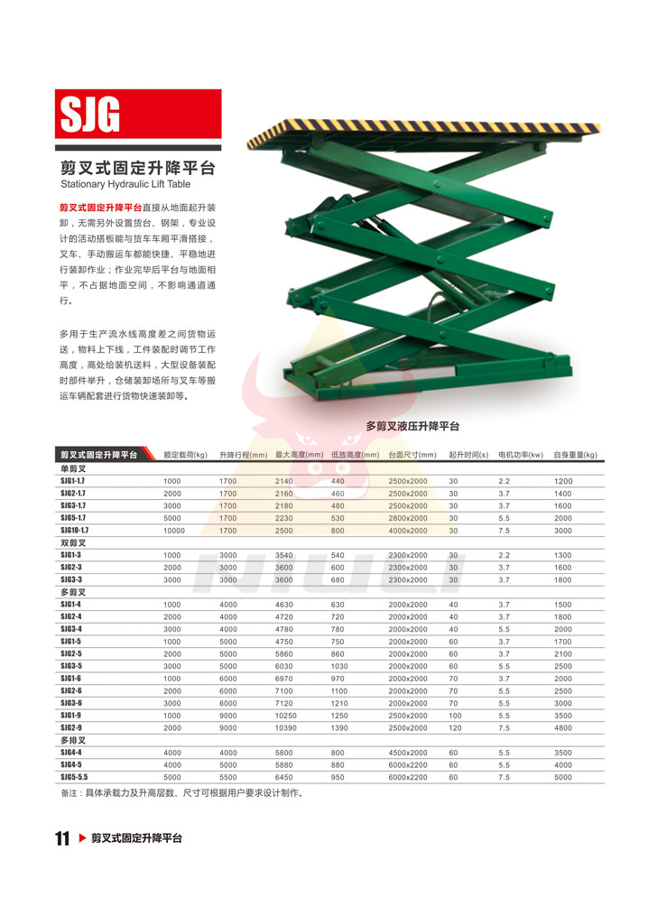 - ● 設有防止升降臺超載的安全裝置;